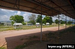 А это крымскотатарский поселок Мамут Султан в пойме Салгира в районе села Доброе. Несколько домов имеют жилой вид, но, в основном, все не достроено и заброшено. Людей не видно.