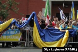 После двухчасовоой манифестации демонстранты двинулись маршем к зданию Дипмиссии России и Беларуси в ООН. В акции приняли участие около трехсот человек.