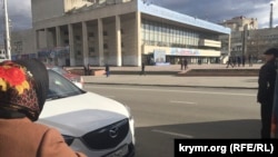 Ближе к 12 часам, когда должна была начаться трансляция из Москвы, мастера включили телеканал «Первый крымский» (в прошлом – ГТРК «Крым»). На площади стали собираться люди, однако их было не более двух-трех десятков, в том числе сотрудники правоохранительных органов. Одни стояли в нескольких метрах от экрана, другие решили присесть у подножия памятника Ленину напротив.