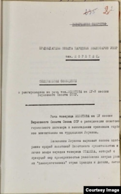 "...Заключенный договор о ненападении между СССР и Германией есть гарантия мира на Западе, а второе – это, что, советская дипломатия этим еще более укрепила влияние на международной арене".