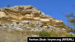 При выветривании более мягкие породы разрушаются первыми, более твердые держатся. В результате образуются козырьки. Длина этого – шесть-семь метров. Однажды и он обрушится под собственной тяжестью или во время землетрясения. Таких отколовшихся обломков на склонах много.