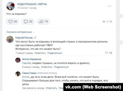 Пророссийские паблики написали про «работу ПВО» и призвали к спокойствию. Однако читатели поставили под сомнение уместность использования слова «спокойно» в контексте использования ПВО вблизи от Керчи.