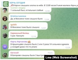 В своих комментариях жители Керчи начали писать, где именно они находились, когда услышали звуки взрывов. Эта импровизированная перекличка показала, что звуки были хорошо слышны в разных районах города, отдаленных друг от друга, а также за городом. Было также много упоминаний мест, приближенных к морю: Осовины, Юркино, пляж «Змеинка».