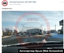 Не менее напряженная ситуация и на городских дорогах. Например, в Симферополе от гололеда пострадала фура.
