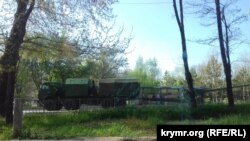 По Симферополю утром 30 апреля прошла большая колонна военной техники, сообщает корреспондент Крым.Реалии.