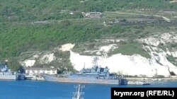 У причалов в Сухарной бухте, которая является частью большой Севастопольской бухты, стоят два больших десантных корабля Черноморского флота России. Один из этих БДК имеет внешние признаки повреждения, сообщает корреспондент Крым.Реалии.