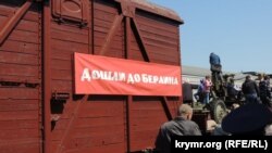 Поезд-музей «Поезд Победы», стилизованный под военные эшелоны периода Второй мировой войны, в 2016 и 2017 годах уже приезжал в Крым. В его составе – шесть вагонов, в том числе, открытые платформы, на которых выставлена техника военных лет, а также вагон-теплушка с ретро-музеем внутри.