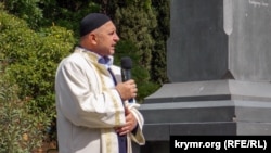 У мемориальной плиты, которая установлена на здании ялтинского автовокзала, имам ялтинского региона Осман Топуз провел траурный молебен.