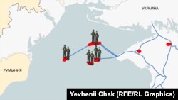 Контролирует вместе с украинским газопроводом, построенным Украиной. Россияне захватили даже те объекты на шельфе, которые расположены ближе к материковой Украине, чем к Крыму.