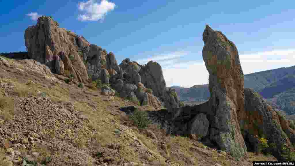 Острые скальные гребни, разбросанные на вершине неровными утесами, которые издали похожи на причудливые фигуры зверей и людей – главная особенность Хашки-Кая. Что-то похожее можно увидеть в более известной Долине привидений на плато Демерджи под Алуштой.