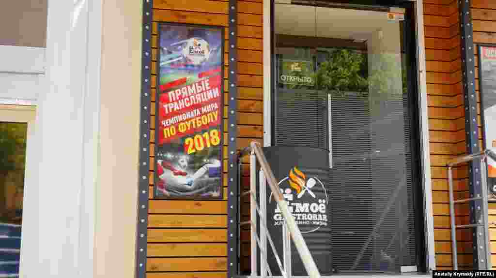 Наружную рекламу в крымской столице не могли не «пристегнуть» к чемпионату мира по футболу, проходящему в России. Тем более, на гребне первых успешных выступлений хозяев чемпионата. На рынках и в подземных переходах продают мобильные телефоны и футболки с символикой чемпионата. До большого спроса на кокошники, правда, дело не дошло.