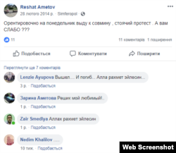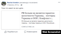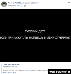 Понимал ли Аметов, что такая акция ‒ крайне рискованна? 2 марта, за день до пикета, он распространяет в Фейсбуке вот такое изображение.