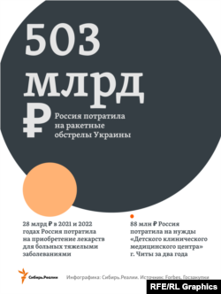 Журнал Forbes подсчитал, что за два месяца войны Россия потратила на ракетные обстрелы Украины 7.5 миллиардов долларов. Речь идет только о стоимости высокоточных ракет "Калибр", а также "Искандеров" и "Точки У". По курсу Центробанка на 4 мая 2022 года, 7.5 миллиардов $ равняются 502 миллиардам 950 миллионам рублей. Это очень много. Но насколько много? Редакция Сибирь.Реалии решила сравнить это с расходами на медицину в России.