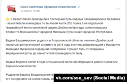 В октябре появился некролог замкомандира по тыловой части так называемой милиции вооруженной группировки «ЛНР» Вадиму Федотову. Похоронили в Севастополе, потому что там живут его родители. Убит в Харьковской области возле Балаклеи.