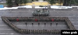 Курсанты учебного центра Национальной гвардии Украины в поддержку арестованных встали на плацу так, чтобы образовать контур военного корабля.